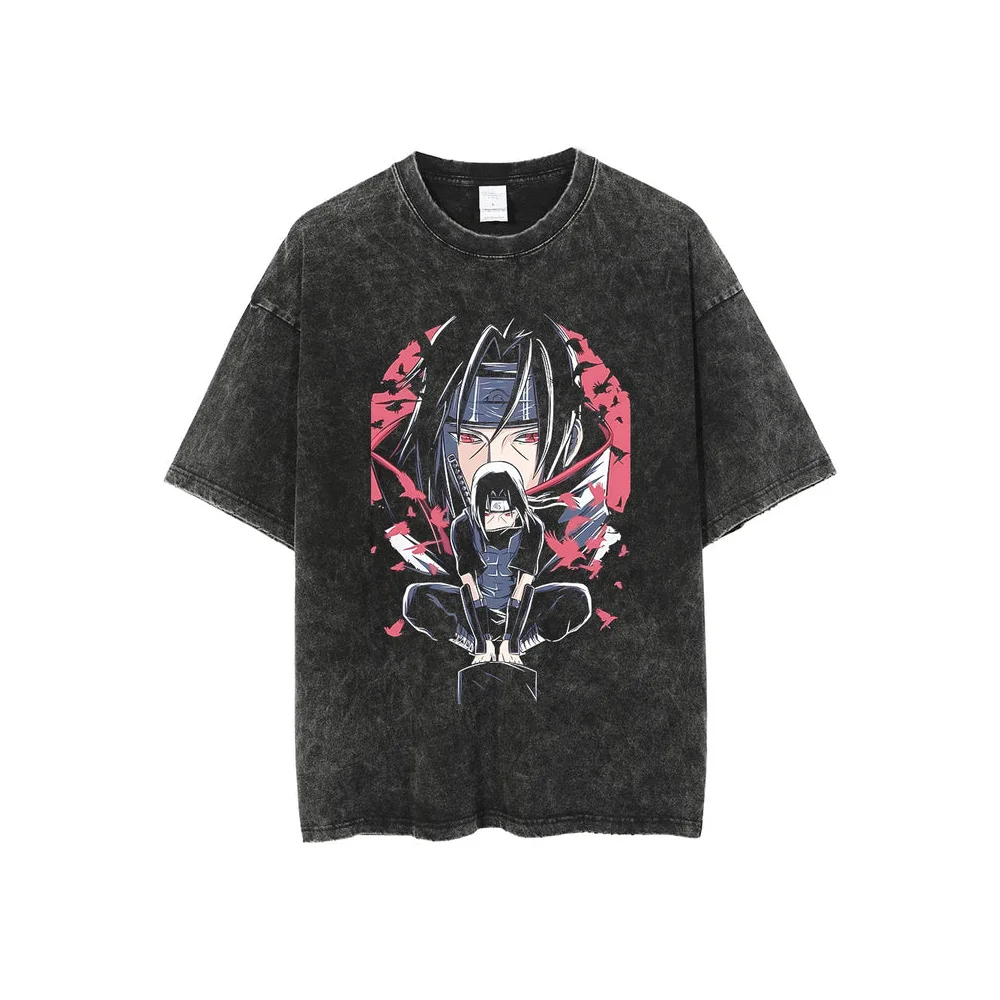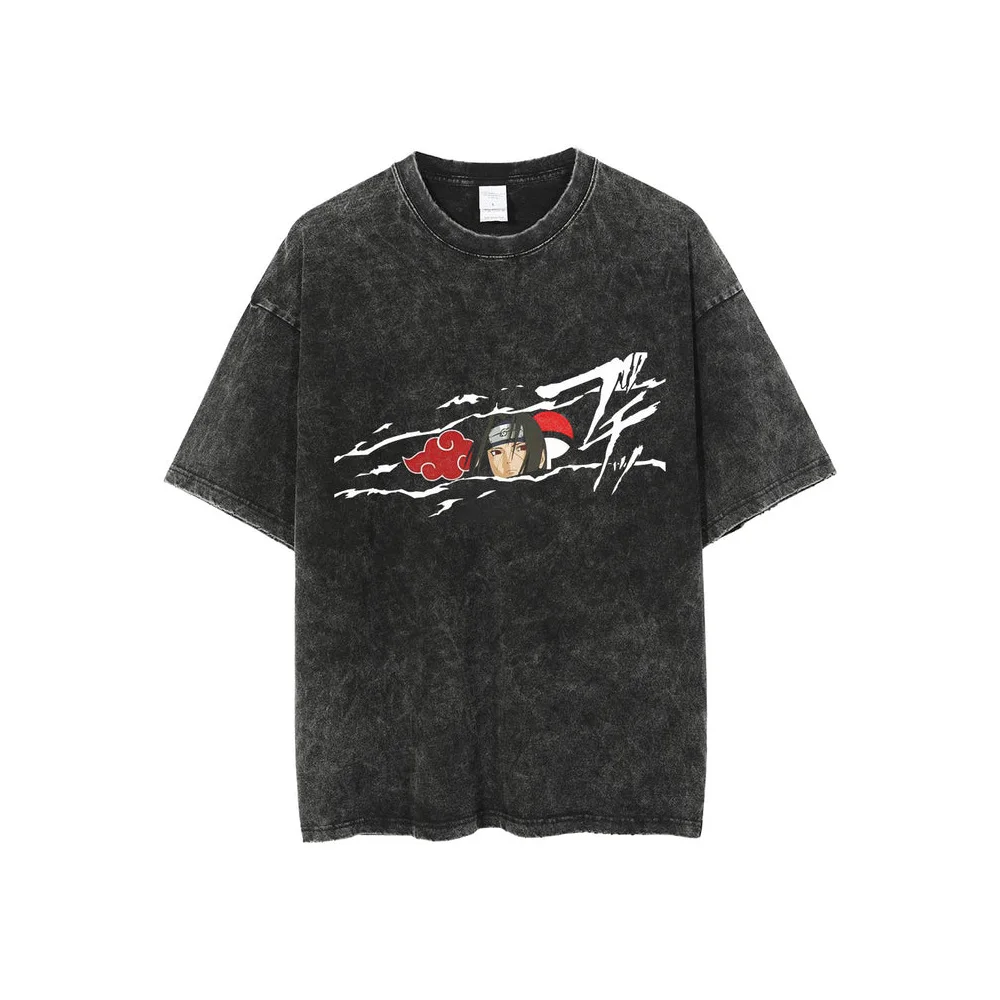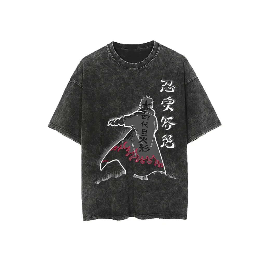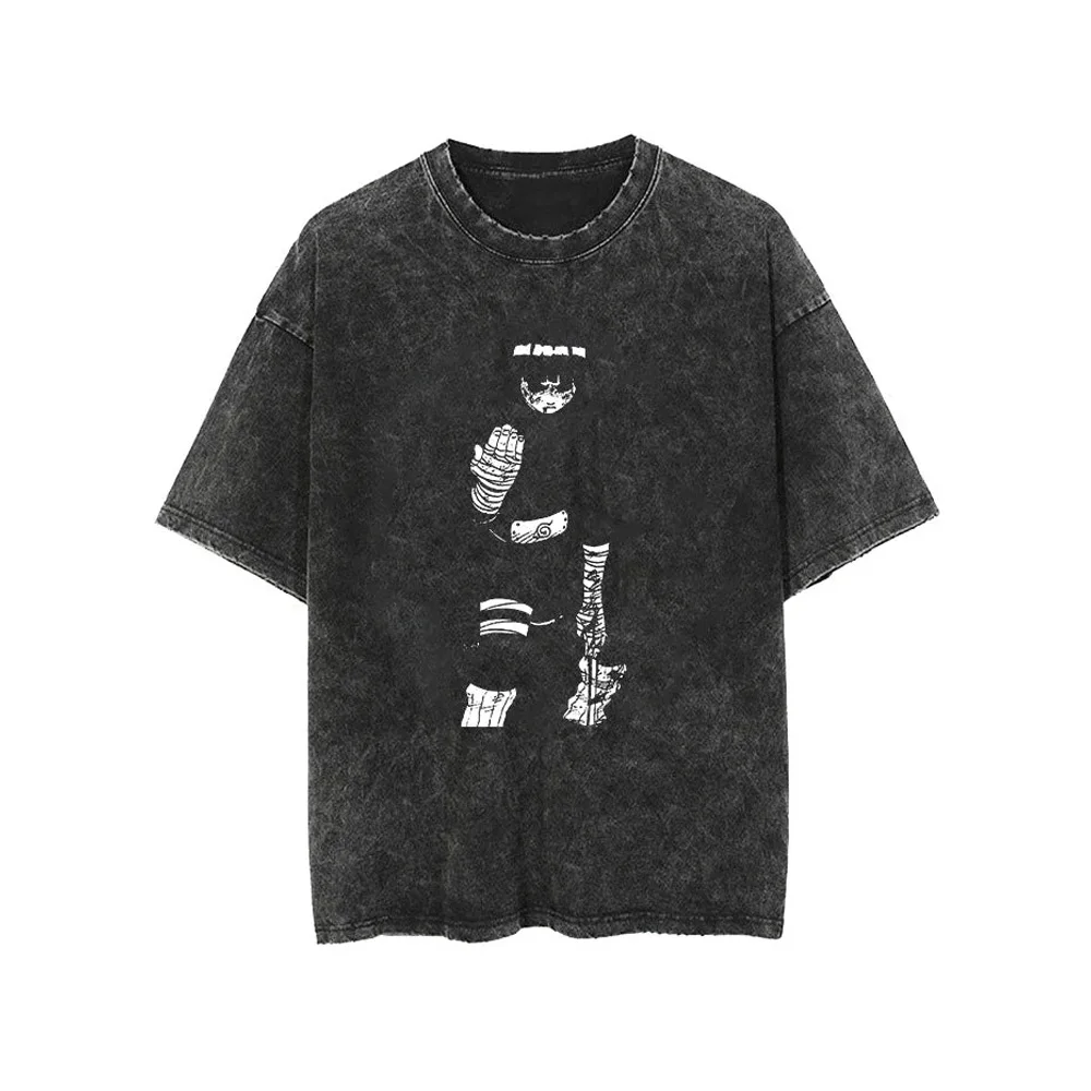 Retro Washed Cotton T-shirt Tops Anime Graphic Tees for Men Women Summer Casual Oversized Tshirt Harajuku Streetwear